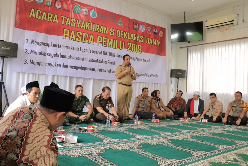 Pemerintah Kota Tangerang bersama TNI, Polri, Tokoh Agama serta Tokoh Masyarakat Kota Tangerang menggelar Tasyakuran dan Deklarasi Damai untuk menciptakan kondisi yang nyaman dan damai usai coblosan Pemilu 2019.
