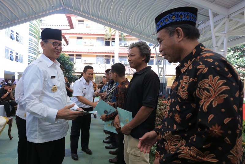 "Bapak-bapak, ibu-ibu harus berterima kasih kepada pemerintah, ini komitmen pemerintah pusat dalam mensejahterakan masyarakat salah satunya menerbitkan sertifikat ini," ucap Gubernur Banten H. Wahidin Halim dalam acara Penyerahan Sertifikat Tanah Untuk Rakyat, di Selasar Pusat Pemerintahan Kota Tangerang, Rabu (10/4).