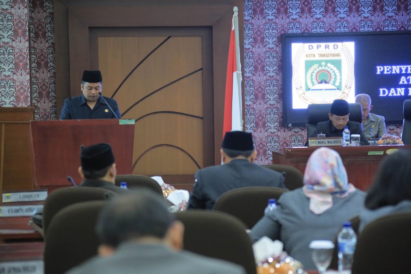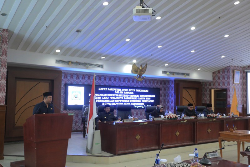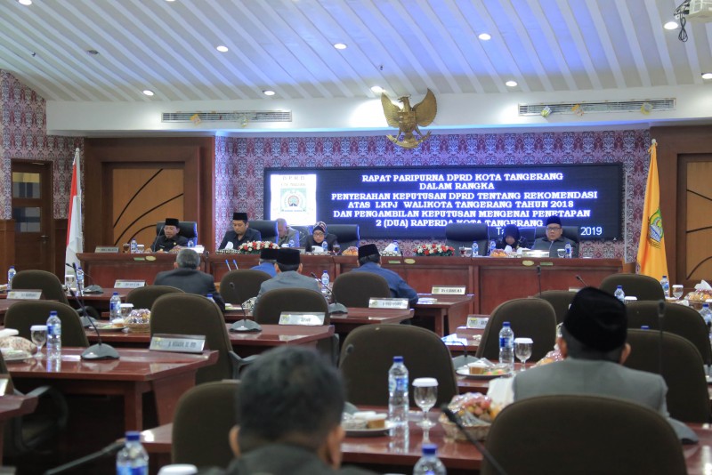 Dewan Perwakilan Rakyat Daerah (DPRD) Kota Tangerang menggelar Rapat Paripurna DPRD Kota Tangerang dengan agenda Penyerahan Keputusan DPRD Tentang Rekomendasi Atas LKPJ Wali Kota Tangerang Tahun 2018 dan Pengambilan Keputusan Mengenai Penetapan Dua Raperda.