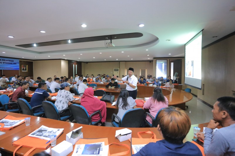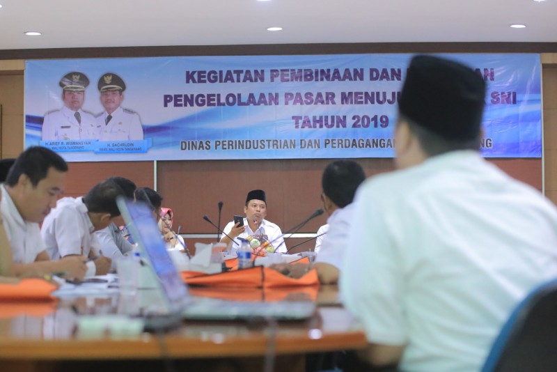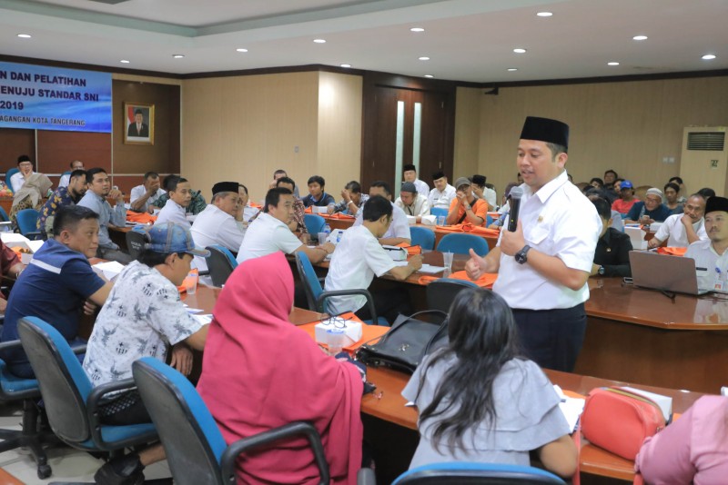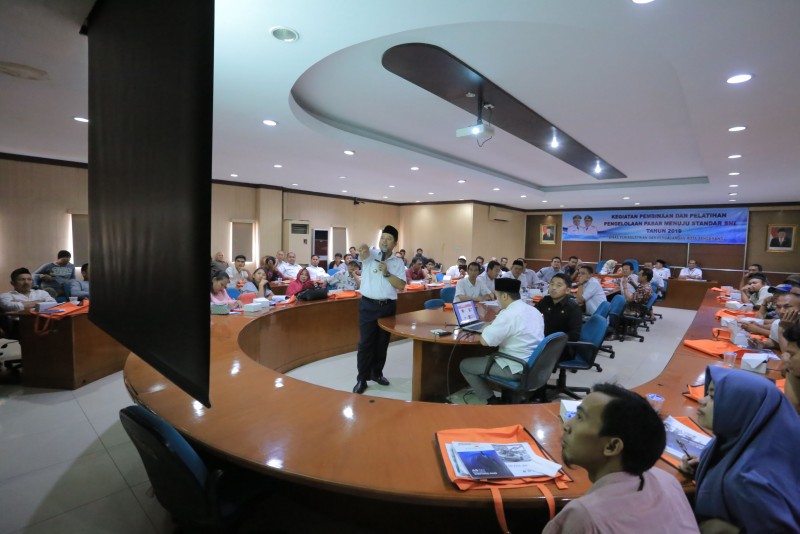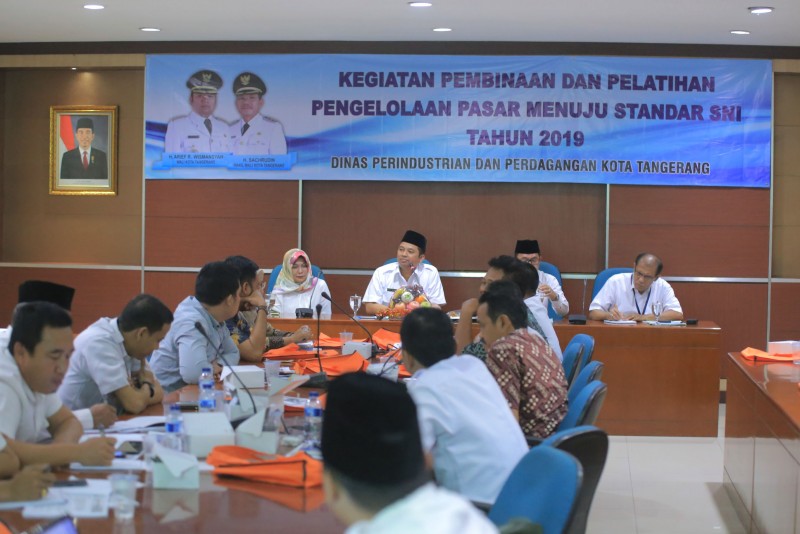 Dinas Perindustrian dan Perdagangan (Disperindag) Kota Tangerang menggelar Kegiatan Pembinaan dan Pelatihan Pengelolaan Pasar Menuju Standar SNI Tahun 2019 di Gedung Cisadane, Rabu (27/03).