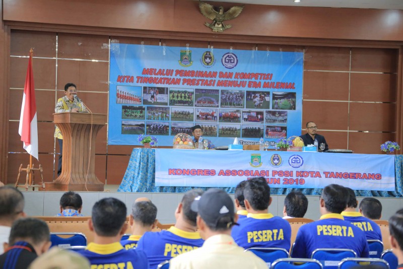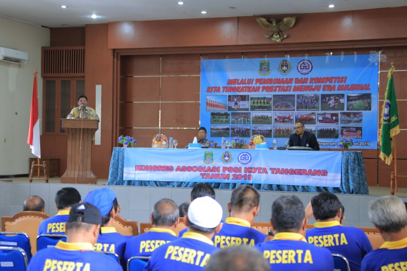Wakil Wali Kota Tangerang H. Sachrudin membuka Kongres Asosiasi PSSI Kota Tangerang Tahun 2019 yang dihadiri sebanyak 100 peserta kongres di Gedung Nyi Mas Melati, Tangerang, Sabtu (16/3).