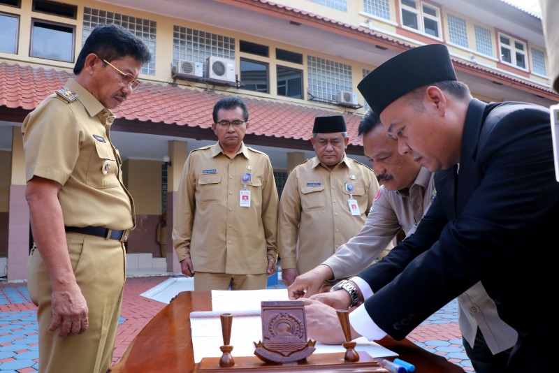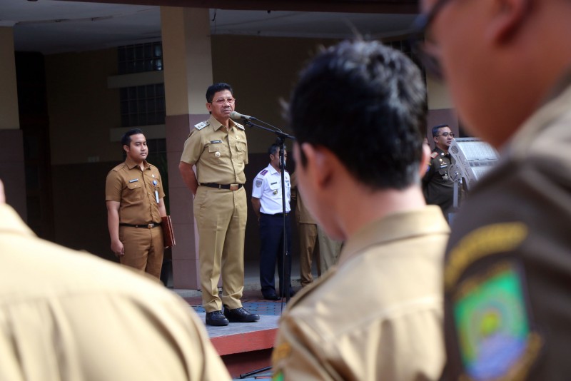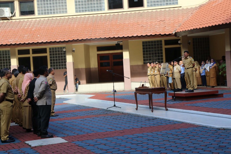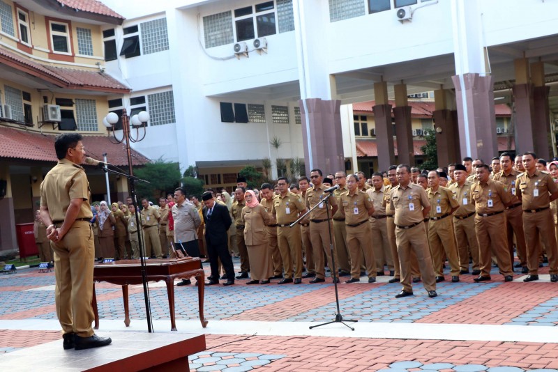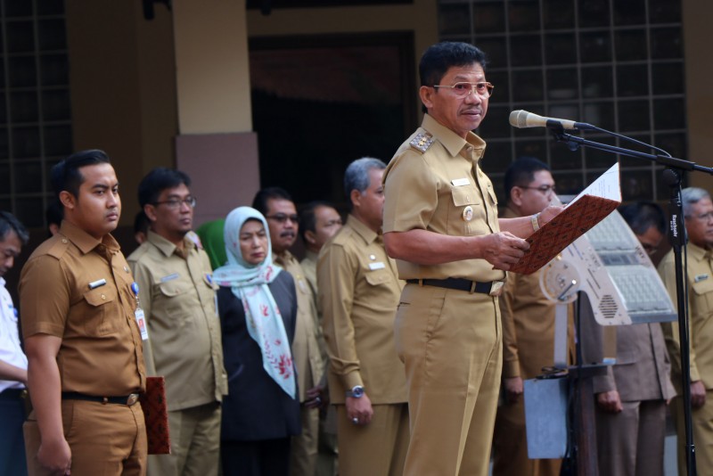 Wakil Wali Kota Tangerang, Sachrudin, mengambil sumpah dan melantik pejabat tinggi pratama di lingkungan Pemerintah Kota Tangerang sebanyak 102 orang saat pelaksanaan Apel Pagi Pegawai, pada Senin (10/2), bertempat di Gedung Pusat Pemerintahan Kota Tangerang.