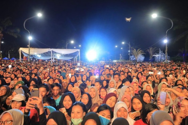 Ribuan masyarakat yang berasal dari dalam dan luar Kota Tangerang sejak sore hari memadati kawasan Pusat Pemerintahan Kota Tangerang untuk menyaksikan musisi idolanya.