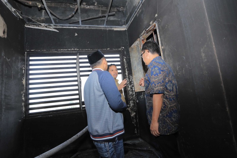 "Kami sudah terjunkan tim dari Pemkot untuk memeriksa dan memperbaiki panel di setiap lantai, tapi kami masih menunggu pemeriksaan tim Labfor POLRI," jelasnya.