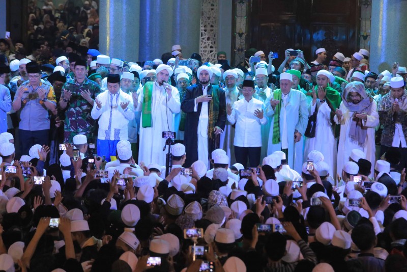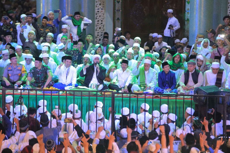 Puluhan ribu masyarakat sejak sore hari memadati kawasan Masjid Raya Al A'zhom untuk mengikuti kegiatan Tangerang Bershalawat 2019 dengan bintang tamu Habib Syech bin Abdul Qadir Assegaf.