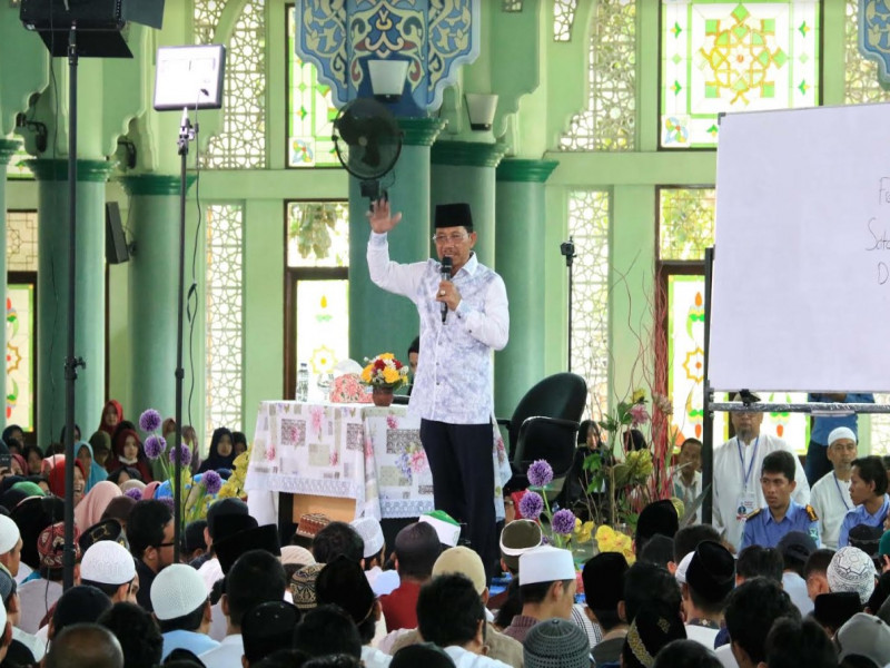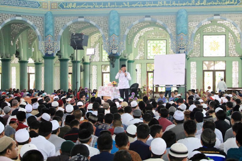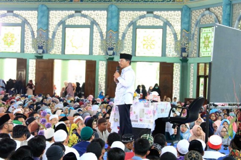 Acara yang mengusung tema "Bahagia Dibawah Naungan Al-Qur'an" tersebut, dihadiri oleh ribuan jamaah yang memadati hingga ke halaman Masjid Raya Al-Azhom.