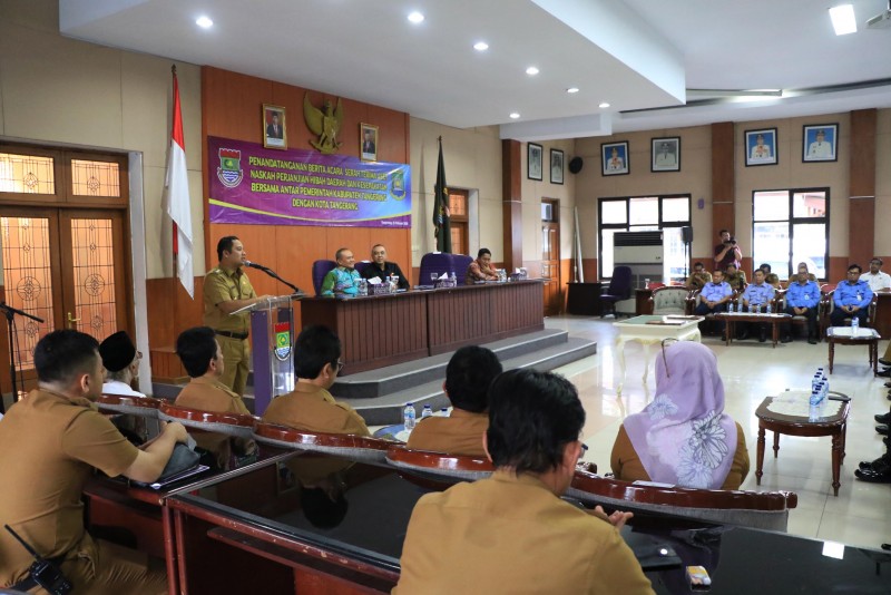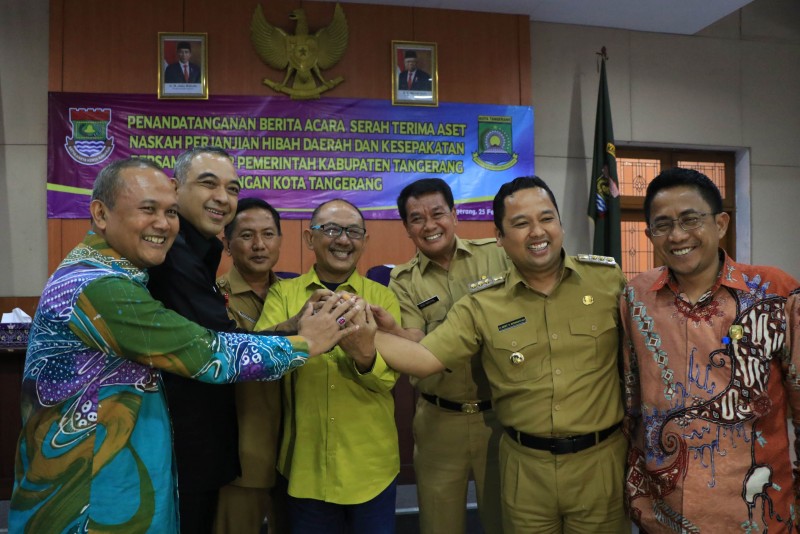 Pemerintah Kota Tangerang dan Pemerintah Kabupaten Tangerang melakukan Penandatanganan Berita Acara Serah Terima Aset Naskah Perjanjian Hibah Daerah (NPHD) dan Kesepakatan Bersama Antara Dua Pemerintaah Daerah.