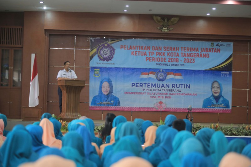 Wali Kota Tangerang H. Arief R. Wismansyah menghadiri acara Pelantikan dan Serah Terima Jabatan Ketua TP PKK Kota Tangerang Periode 2018-2023 di Aula Gedung Nyi Mas Melati, Tangerang, Rabu (9/1).
