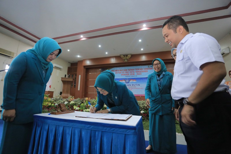 Pelantikan dilakukan secara langsung oleh Wakil Ketua I TP PKK Provinsi Banten Hj. Ade Rosi Khairunnisa Andhika kepada Hj. Aini Suci Wismansyah sebagai ketua TP PKK Kota Tangerang Periode 2018-2023.