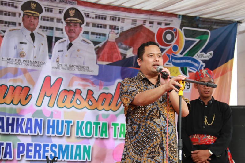 Wali Kota Tangerang H. Arief R Wismansyah didampingi wakilnya H. Sachrudin dan Sekda H. Herman Suwarman meresmikan Taman Kreatif Bantaran Sungai yang dibangun oleh masyarakat Kelurahan Belendung.