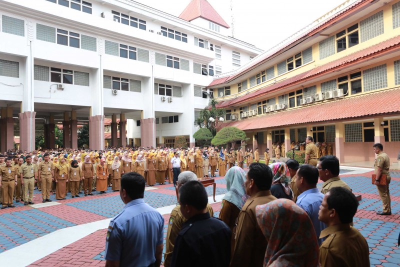 Wali Kota Tangerang Arief R. Wismansyah memimpin Apel Pagi Pegawai sekaligus melantik 257 PNS yang direkrut pada tahun 2018 lalu, bertempat di Lapangan Apel Gedung Pusat Pemerintahan Kota Tangerang, Senin (2/3).