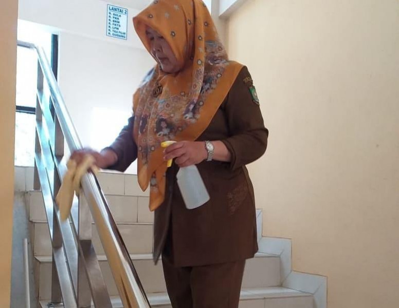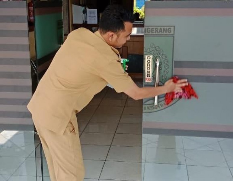 "Penyemprotan dilakukan mulai dari pintu depan kantor, ruang-ruang pelayanan, meja pelayanan, pegangan tangga, ruang lurah dan camat, serta bagian lainnya," pungkasnya.