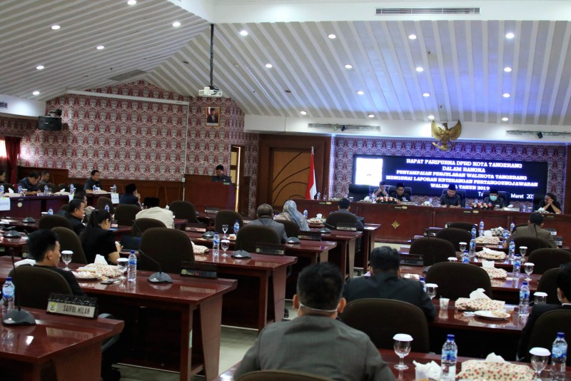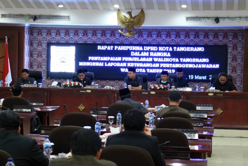 Dewan Perwakilan Rakyat Daerah (DPRD) Kota Tangerang menggelar Rapat Paripurna dalam rangka Penyampaian Penjelasan Wali Kota Tangerang mengenai Laporan Keterangan Pertanggungjawaban Wali Kota Tangerang Tahun 2019 berlokasi di Ruang Rapat DPRD Kota Tangerang, pada Kamis (19/3/2020).