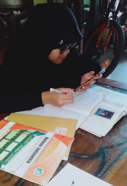 Iis Yulianti, Guru Matematika SMPN 24 Kota Tangerang yang melakukan KBM melalui via whatsapp dan google form. Memberikan soal-soal latihan lewat google form, serta berinteraksi di jam-jam kelas matematika lewat whatsapp.