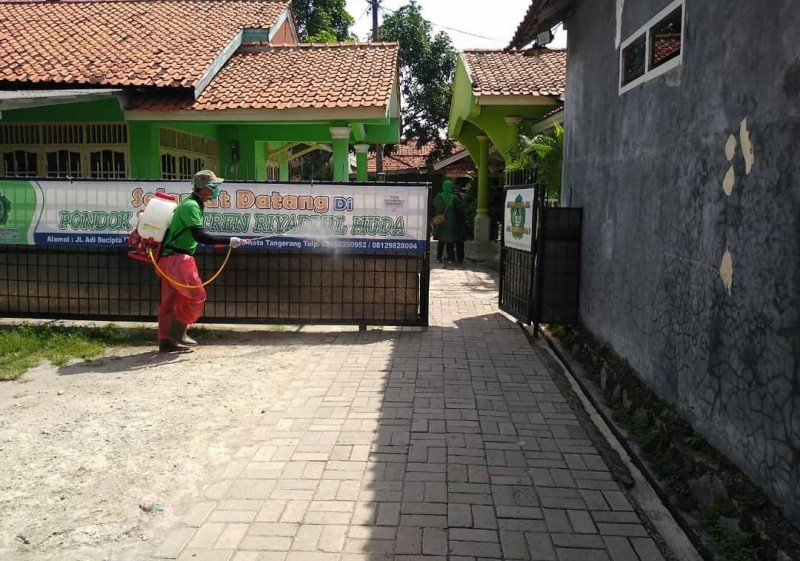 "Kemarin FKTS Benda baru saja melakukan penyemprotan disinfektan di Pesantren Riyadhul Huda dan Ummu Habibah yang ada di Kelurahan Belendung, Kecamatan Benda," katanya Sabtu, (4/4/2020).