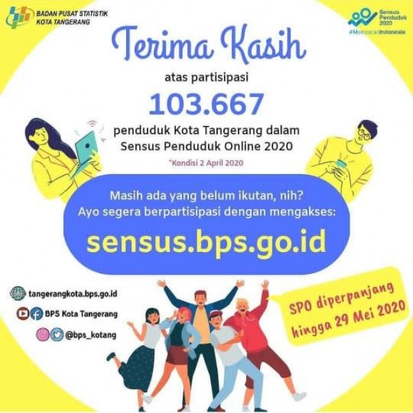 Sejalan dengan pernyataan resmi Pemerintah untuk melakukan pembatasan kegiatan di luar rumah. Badan Pusat Statistik (BPS) telah memperpanjang Sensus Penduduk Online hingga 29 Mei mendatang.