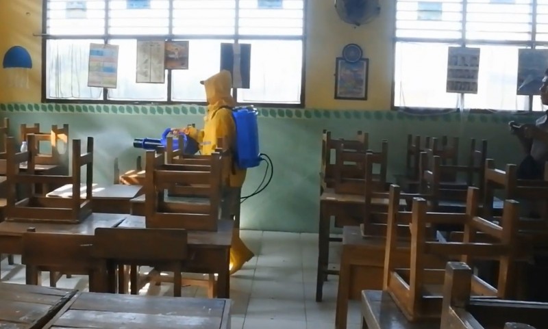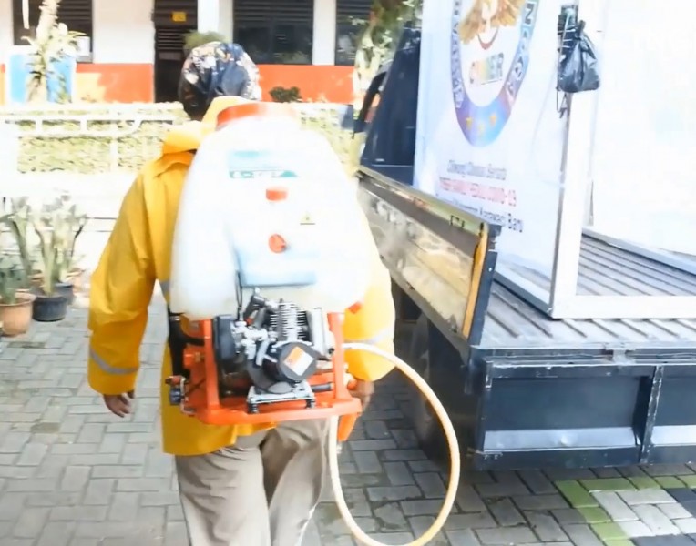 "Kami lakukan penyemprotan di ruang kelas itu sudah pasti, lalu di lorong kelas, ruang guru hingga perpustakaan," terang salah satu Relawan Cyber, Teguh Saniyako.