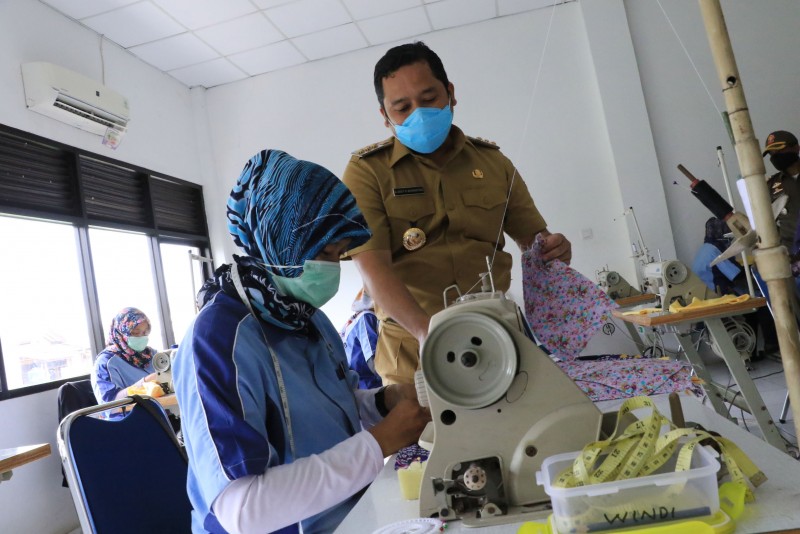 Menjawab kondisi itu, UPT Balai Latihan Kerja (BLK) Larangan turut memproduksi masker kain yang nantinya diserahkan kepada Gugus Tugas Penanganan Covid-19 Kota Tangerang untuk segera didistribusikan sesuai kebutuhan.