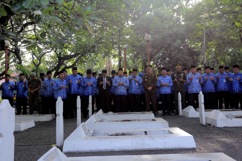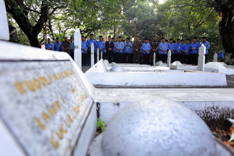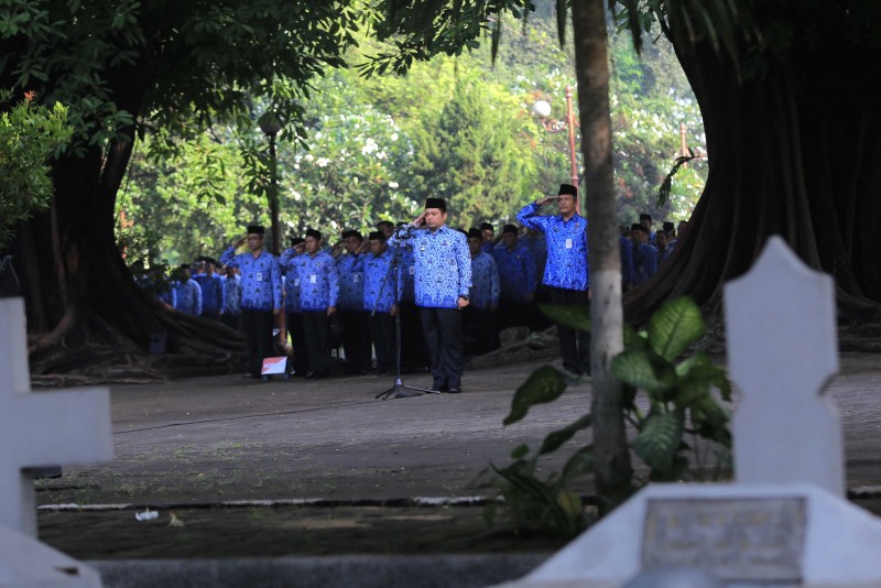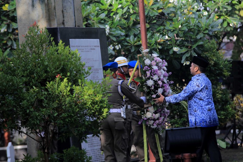 Wali Kota Tangerang H. Arief R. Wismansyah memimpin apel dalam rangka peringatan Hari Pahlawan yang diperingati pada tanggal 10 November setiap tahunnya di Taman Makam Pahlawan (TMP) Taruna, Senin (12/11).