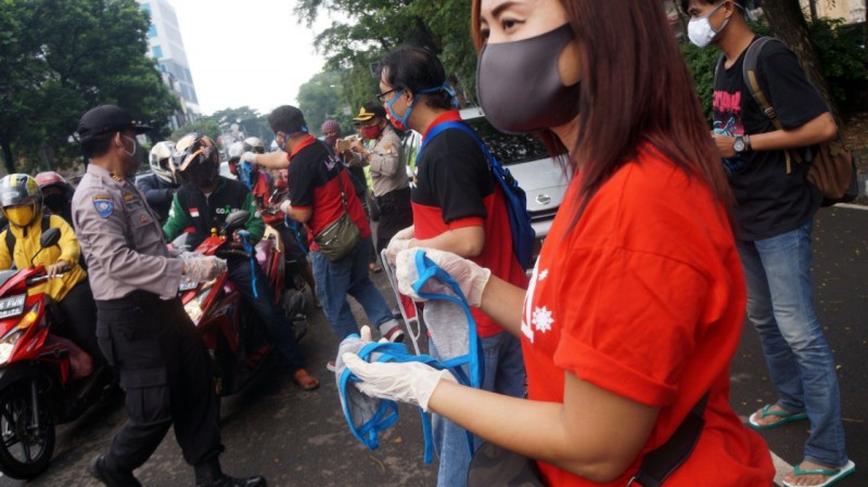 Koordinator pelaksana ASA, Tommy, menjelaskan, masker kain dibagikan kepada pengendara bermotor dan warga yang diketahui belum memiliki atau tidak menggunakan masker. Titik lokasi pertama pembagian masker dilakukan di depan Polrestro Tangerang.