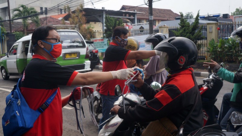 Bersama puluhan anggota komunitas ASA, petugas kepolisian dan anggota TNI, pembagian masker juga dilakukan di kawasan Pasar Anyar, Jalan Soleh Ali, Simpang 7 Neglasari. Mulai dari pengemudi jasa transportasi daring dan pedagang pasar, langsung menyerbu iring-iringan mobil yang membagikan masker.