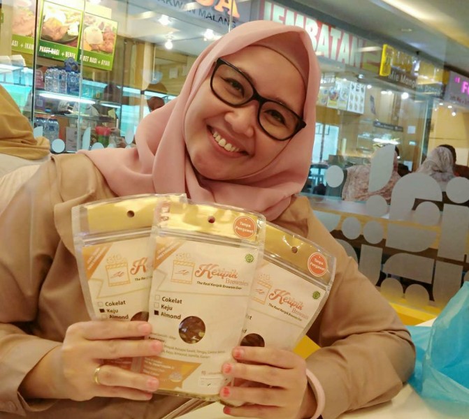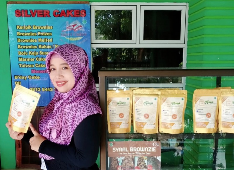 Anjuran di rumah saja selama masa PSBB di Kota Tangerang tak menjadi penghalang bagi owner Keripik Brownies, Silvia Vetonica, untuk tetap menjajakan camilan kering nan manis hasil produksinya. Seolah tak kehabisan akal, Silvia kini menerima pesanan keripik brownies secara online.