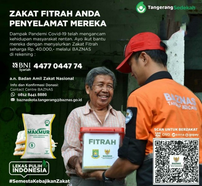 Badan Amil Zakat Nasional (Baznas) Kota Tangerang, terus berinovasi dalam mengajak masyarakatnya untuk menunaikan zakat. Pada bulan ramadan kali ini, Baznas bahkan memberlakukan Zakat Fitrah Digital atau pembayaran zakat yang bisa dilakukan secara non tunai.