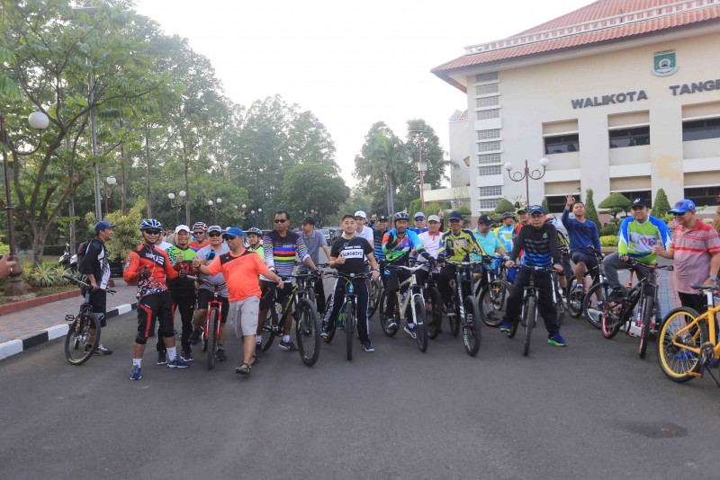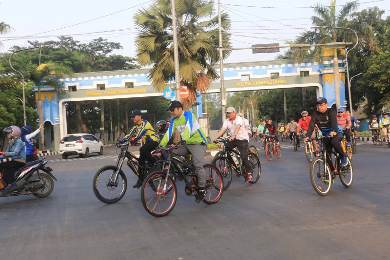 Wali Kota Tangerang Arief R. Wismansyah bersama wakilnya Sachrudin, Jumat (14/09) pagi, gowes sepeda bareng dengan jajaran pejabat teknis. Kali ini rombongan Wali Kota menuju ke wilayah Kecamatan Pinang.