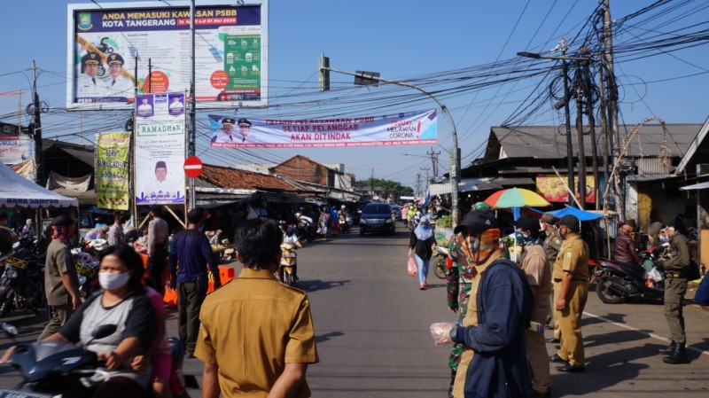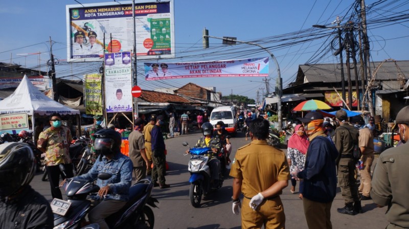 Seperti yang terpantau di wilayah Kecamatan Pinang, puluhan anggota Satpol PP, kepolisian, dan TNI melakukan monitoring di kawasan pasar bengkok sejak pagi hari.
