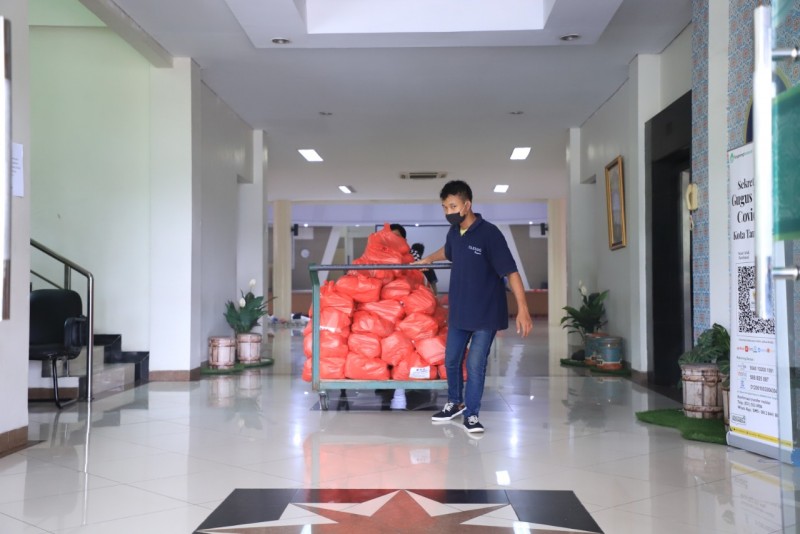 Posko Gugus Tugas Covid-19 Kota Tangerang kembali menyalurkan bantuan. Bantuan diberikan dalam bentuk paket sembako yang berisikan beras, minyak sayur, gula dan mie instan. Secara bertahap, paket sembako didistribusikan ke 13 kecamatan.