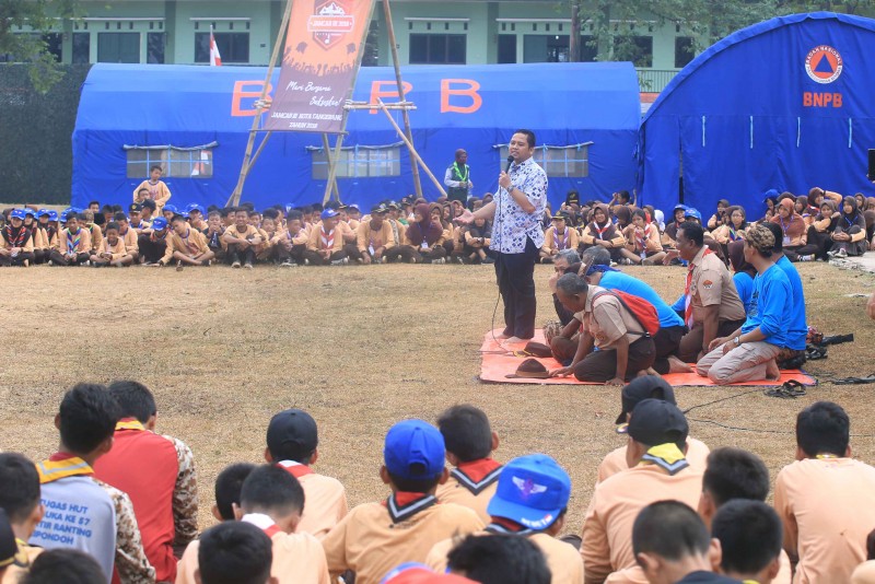 Wali Kota Tangerang H. Arief R. Wismansyah menghadiri acara Jambore Pramuka Cabang Kota Tangerang III Tahun 2018 yang berlokasi di Kompi Senapan C, Yonif Mekanis 203 Arya Kemuning, Jatiuwung, Kota Tangerang, Sabtu (1/9).