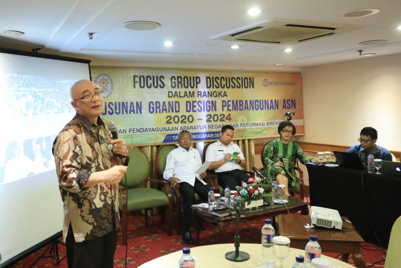 Wali Kota Tangerang H. Arief R. Wismansyah berkesempatan menjadi narasumber pada acara Focus Group Discussion (FGD) dalam rangka Penyusunan Grand Design Pembangunan ASN 2020-2024 dengan tema "Capaian dan Tantangan Pengelolaan ASN".
