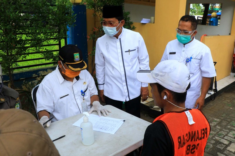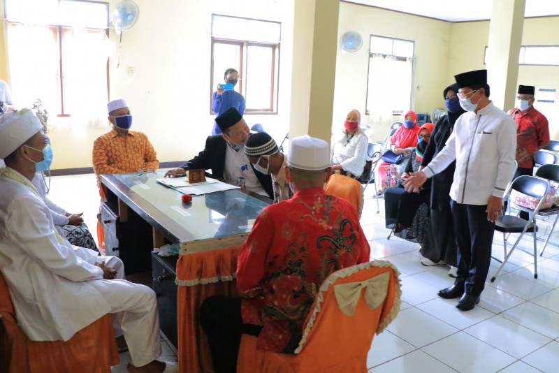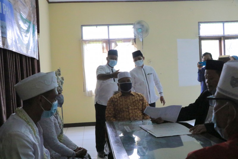 Wakil Wali Kota Tangerang, H. Sachrudin, didampingi Camat Pinang, Kaonang, sambangi Kantor Urusan Agama (KUA) di Kecamatan Pinang yang sedang melakukan prosesi akad nikah dengan menerapkan protokol kesehatan Covid-19, Jum'at (5/6/20).