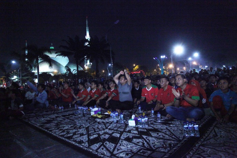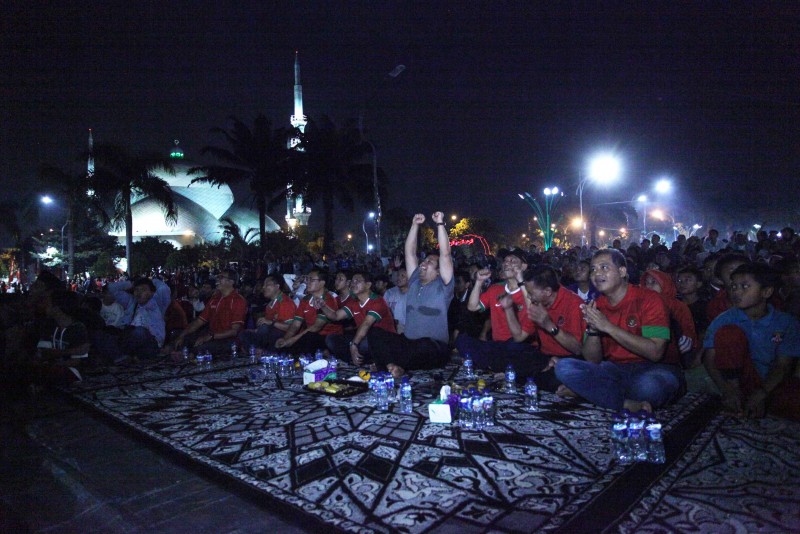 Selepas Isya, pelataran Pusat Pemerintahan (Puspem) Kota Tangerang sudah terlihat dipadati oleh ribuan supporter yang hadir. Dan seolah tidak mau kalah dengan para supporter yang hadir di Gelora Sidoarjo, ribuan masyarakat Kota Tangerang dan sekitarnya yang ikut nobar juga terlihat begitu semangat menyanyikan lagu penyemangat bagi Tim Garuda.