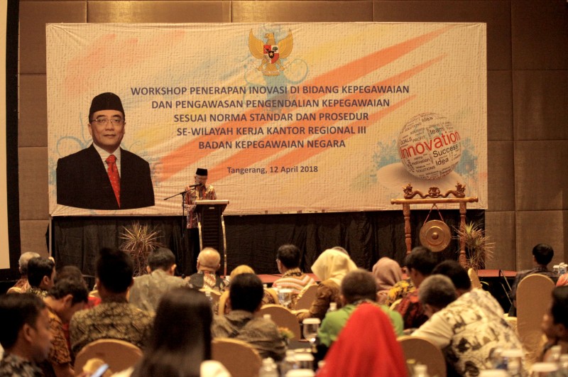 Hal tersebut disampaikan oleh Kepala BKN, Bima Harya Wibisana, saat membuka Workshop Penerapan Inovasi di Bidang Kepegawaian dan Pengawasan Pengendalian se-Wilayah Kerja Kantor Regional (Kanreg) III Badan Kepegawaian Negara (BKN) di Hotel Novotel, Kota Tangerang, Kamis (12/04).
