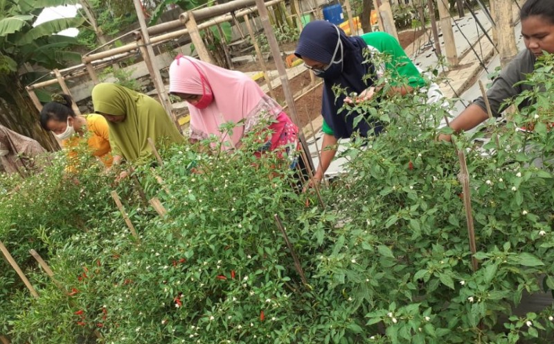 Salah satu kelompok wanita tani (KWT) Kenanga di Bugel, Karawaci menanam sayur mayur di luas lahan kurang lebih 150 meter untuk menghasilkan pangan lokal baik untuk di konsumsi sendiri maupun dijual.