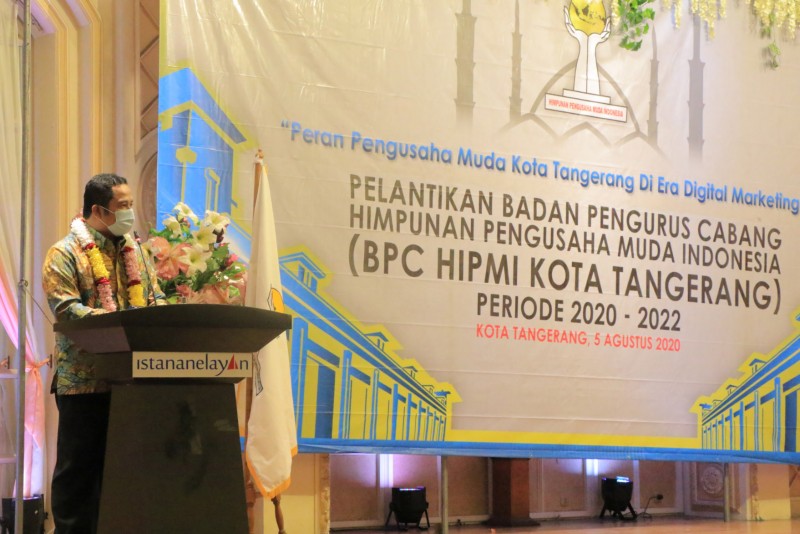 Wali Kota Tangerang, H. Arief R. Wismansyah, menghadiri acara pelantikan Badan Pengurus Cabang (BPC) Himpunan Pengusaha Muda Indonesia (HIPMI) Kota Tangerang Periode 2020-2023.
