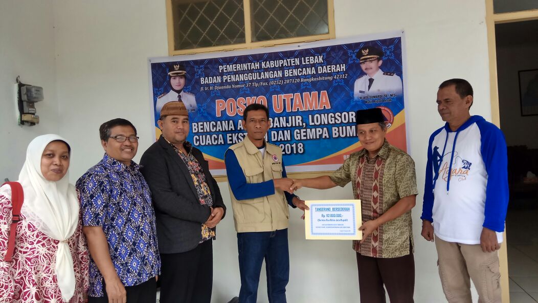 Dan pada Minggu (28/01), rombongan Pemkot Tangerang yang dipimpin oleh Kabag Kesra H. Ayi Nuryadin memberikan bantuan ke korban gempa Lebak melalui Asisten II Pemkab Lebak yang juga disaksikan oleh Kepala BPBD Lebak.