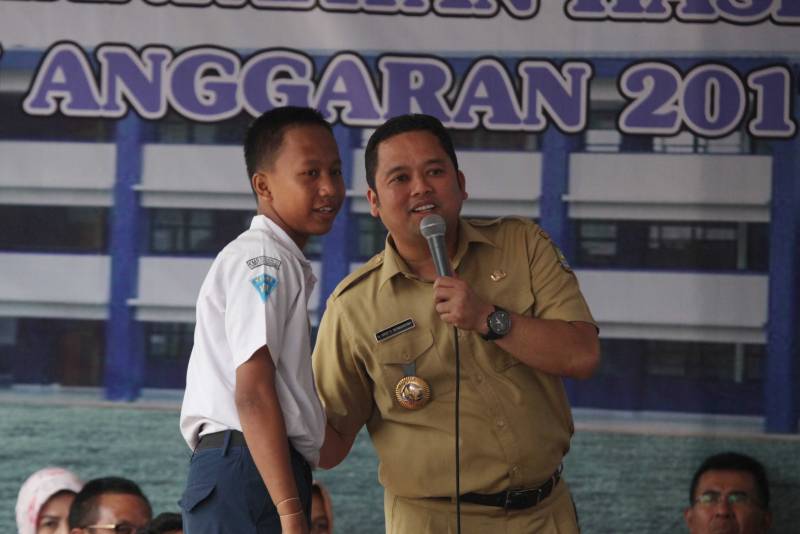 "Gedung sekolahnya sekarang sudah bagus jasa, jadi adik-adik juga harus lebih semangat lagi belajarnya," pesan Wali Kota.