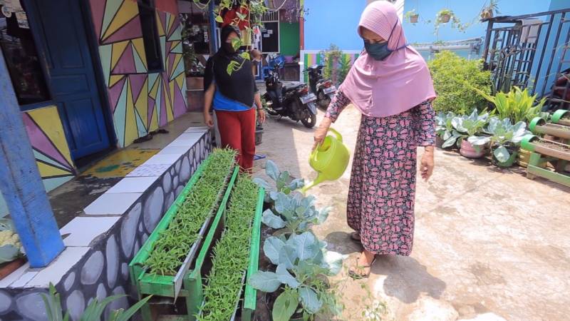 "Awalnya 2018 berpikir daripada ibu-ibu disini ngerumpi aja, mending diahlihkan untuk kegiatan positif dan menghasilkan. Alhamdulillah, saat ini sudah beberapa kali panen dan saat pandemi kaya gini kita jadi terbantu karena ga perlu belanja di pasar atau tukang sayur," ucap Ketua KWT Kampung Inovasi, Endarwati.