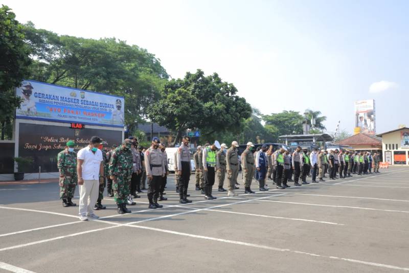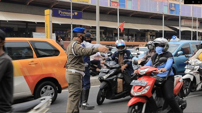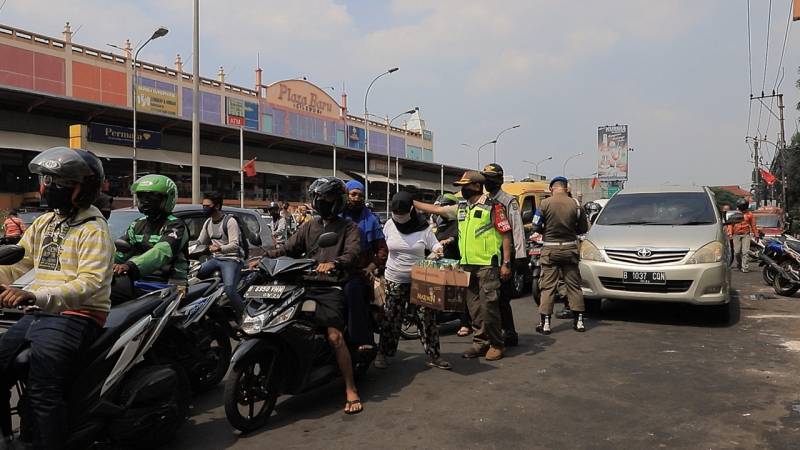Pengawasan protokol kesehatan, PSBB Kota Tangerang makin diperketat. Sanksi denda administrasi Rp50 ribu bagi warga yang tak bermasker, kini sudah diberlakukan secara tegas. Seperti yang dilakukan oleh jajaran Satpol PP, Dishub dan kepolisian yang menggelar Operasi Protokol Kesehatan (Prokes), di CBD Ciledug, Jumat (2/10/20).