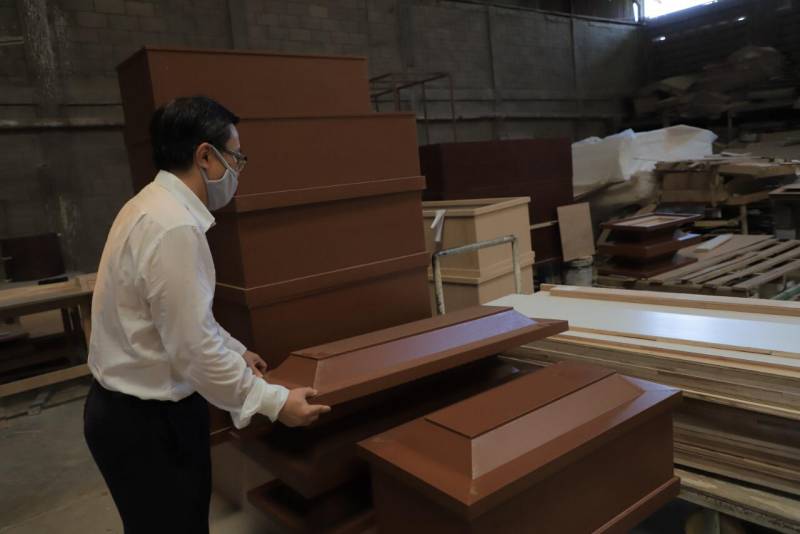 Berawal dari dua anggota keluarga yang meninggal akibat Covid-19 dan kesulitan mendapat peti mati, Lie A Min dan Jimmy, pengusaha furnitur di Kecamatan Benda, Kota Tangerang mengubah setengah pabrik miliknya, menjadi produksi peti mati Covid-19.