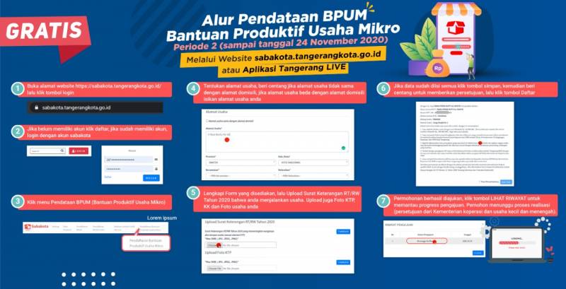 Pendaftaran Stimulus Modal Usaha UMKM yang berasal dari program Bantuan Produktif Usaha Mikro (BPUM) pemerintah pusat bisa dilajukan secara online. Hal tersebut ditegaskan langsung oleh Kepala Dinas Kominfo Kota Tangerang, Mulyani saat dihubungi melalui sambungan telepon, Selasa (20/10).