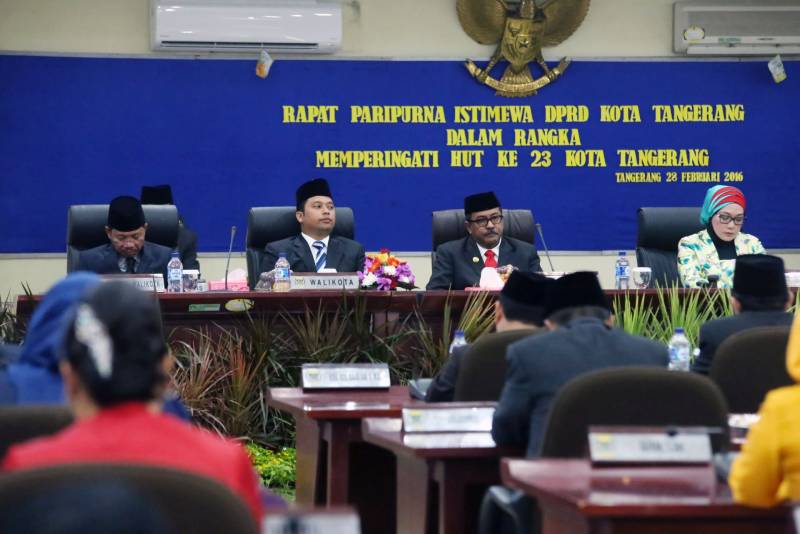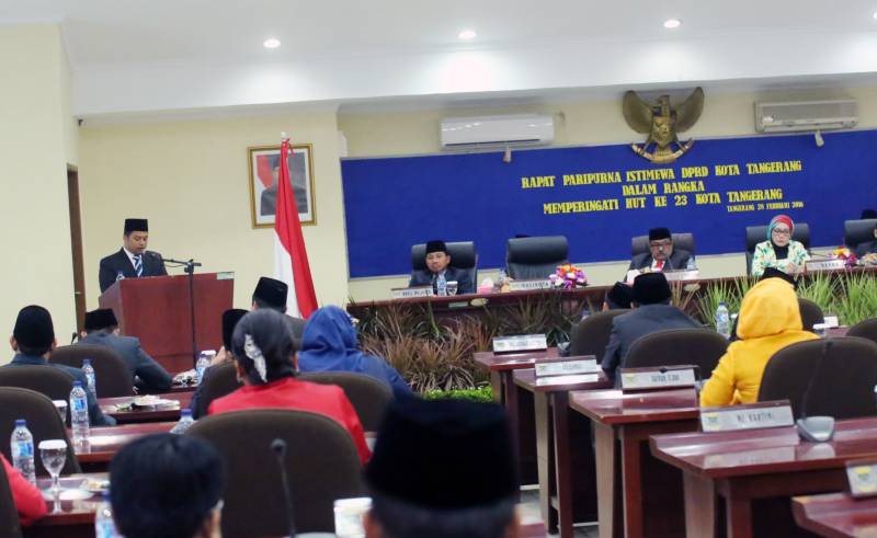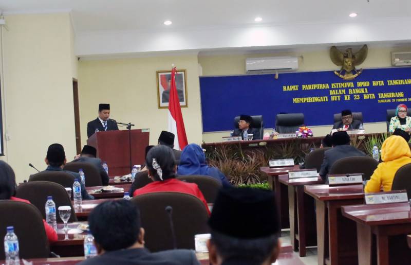 Dalam sambutannya, dihadapan Sidang Paripurna Dewan Perwakilan Rakyat Daerah (DPRD) Kota Tangerang, dalam rangka Hari Ulang Tahun (HUT) Ke-23 Kota Tangerang, Minggu (28/02), Wali Kota Tangerang H. Arief R. Wismansyah, mengajak seluruh komponen bersatu dan berkarya bersama untuk kemajuan dan kesejahteraan masyarakat Kota Tangerang.