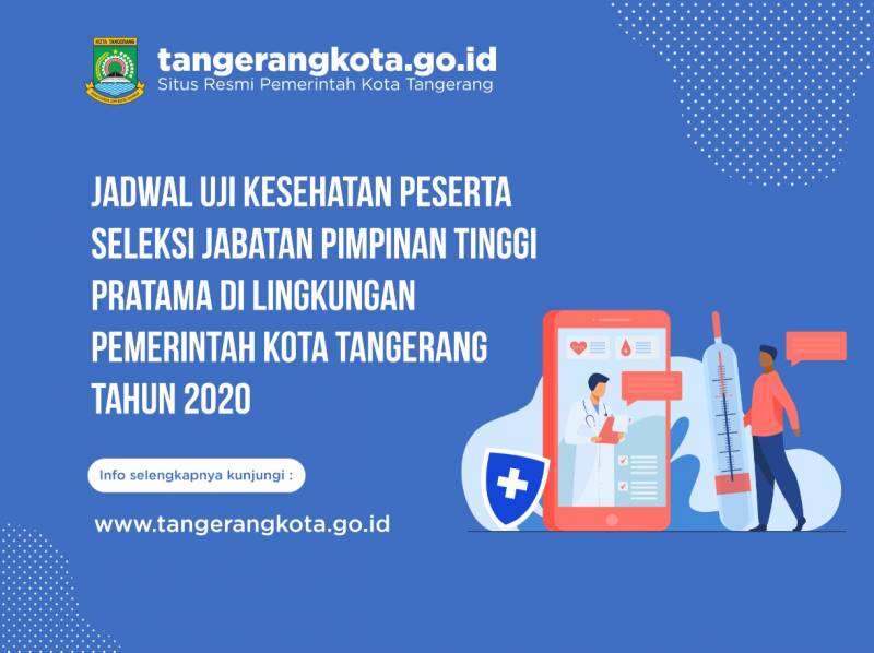 Panitia seleksi Jabatan Pimpinan Tinggi Pratama, dengan ini memerintahkan kepada nama-nama peserta seleksi Jabatan Pimpinan Tinggi Pratama di Lingkungan Pemerintah Kota Tangerang Tahun 2020 di bawah ini agar mengikuti Tahapan Uji Kesehatan, sebagai berikut :