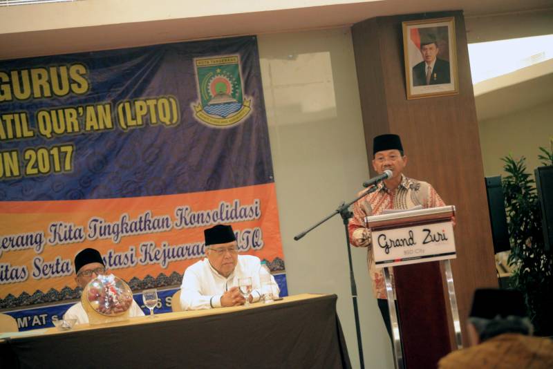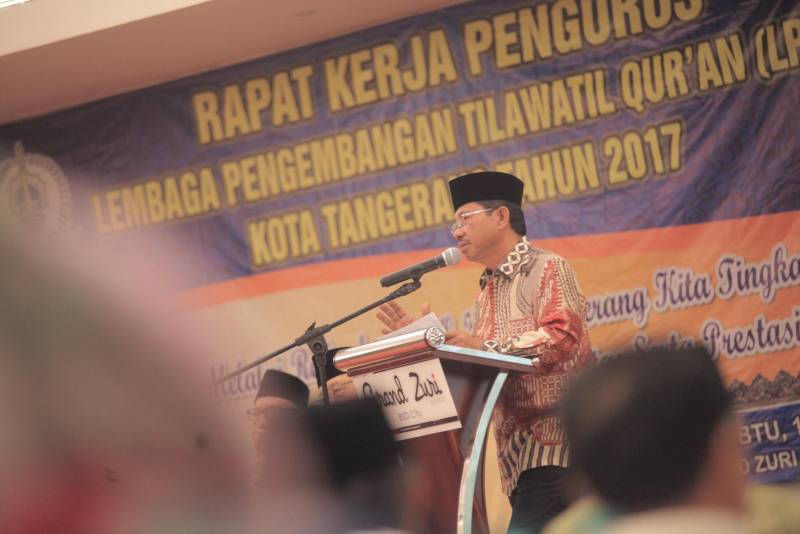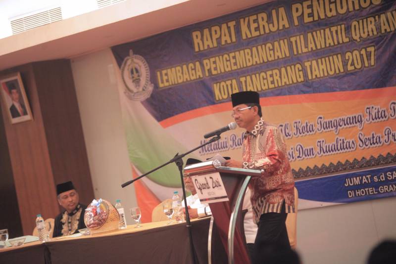 Wakil Wali Kota Tangerang, H. Sachrudin, yang berkesempatan hadir dalam acara Penutupan Rapat Kerja Pengurus LPTQ (Lembaga Pengembangan Tilawatil Qur'an) Kota Tangerang menyampaikan agar dengan adanya LPTQ di kota bermoto Akhlakul Kharimah ini bisa memberikan dampak positif dalam pembinaan bibit-bibit muda Qori' dan Qori'ah.