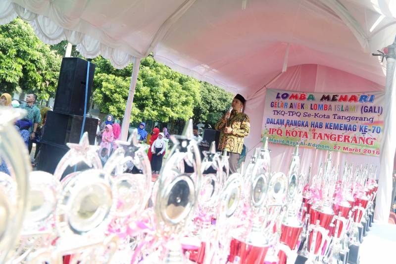 Ikatan Pendidikan Al-Qur'an (IPQ) Kota Tangerang, Minggu (27/03), menggelar Gerakan Aneka Lomba Islami. Kegiatan yang diikuti oleh ratusan peserta yang berasal dari Taman Kanak-Kanak Al-Qur'an (TKQ) dan Taman Pendidikan Al-Qur'an (TPQ) dilaksanakan di pelataran Masjid Raya Al-A'zhom Kota Tangerang.