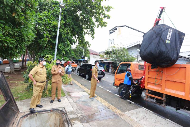 Wali Kota Tangerang H. Arief R Wismansyah yang didampingi Kepala Dinas Lingkungan Hidup (DLH) Kota Tangerang Dedi Suhada melihat langsung percontohan Tempat Pembuangan sampah yang terpendam yang berlokasi di Jalan Benteng Jaya Kelurahan Sukarasa Kecamatan Tangerang, Senin (7/12).