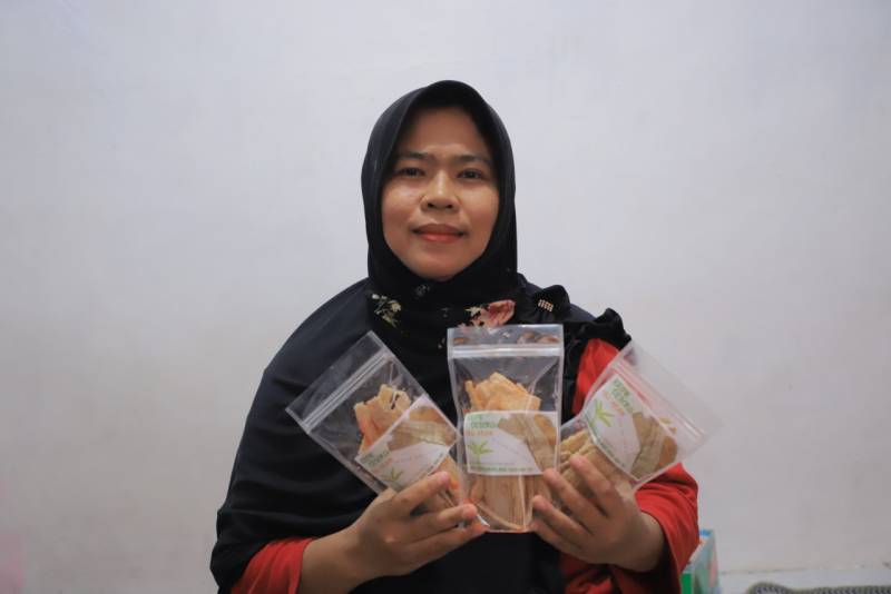 “Awalnya saya lihat anak saya kok buat keripik dari gedebok pisang. Saya coba, ternyata rasanya gurih juga. Saya pun mulai coba produksi dan memasarkannya,” ujarnya pada Rabu, (09/12), saat dihubungi via telepon.