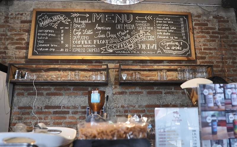 "Konsep awalnya distro ya, saya jual pakaian di sini dengan merek dagang monochrome. Lalu, saya buka coffee shop bernama coffee rider, mengingat kedai kopi yang saat ini ramai dimana-mana. Selain itu, bagi yang ingin menikmati makanan berat juga tersedia di sini. Ada nasi box kekinian atau Nabokin," ujarnya saat ditemui di tempat usahanya, Jumat (11/12).